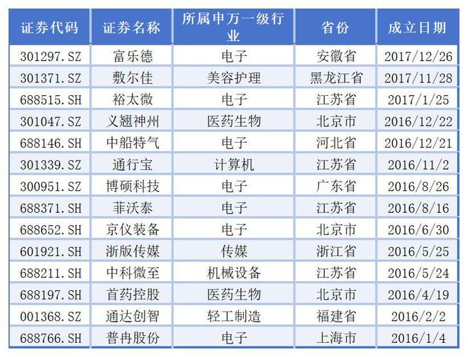 从成立时间看,有702家成立于2006年之前,其中,348家成立于2000年之前。此外,富乐德、敷尔佳、裕太微、义翘神州、中船特气、通行宝、博硕科技、菲沃泰、京仪装备、浙版传媒、中科微至、首药控股、通达创智、普冉股份14家公司成立尚不足10年。其中,电子行业有7家,占比达到50%。
