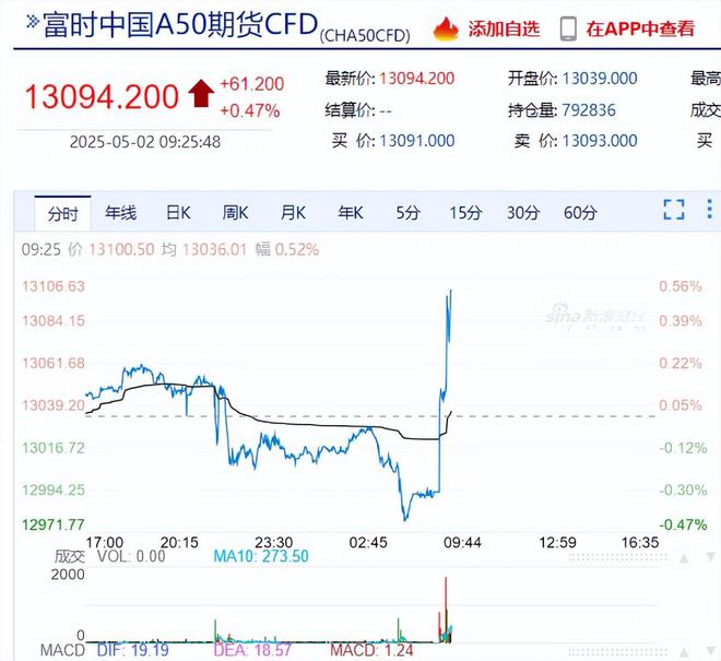 中国商务部加班做出最新表态后,新加坡富时中国A50指数期货上涨。(下图)