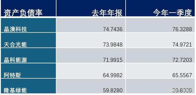 行业性亏损的当下,晶澳的亏损亦属正常,但公司负债率在今年一季度继续攀升,增至76.33%。和公司自己相比,已经创下历史新高;和同行比,晶澳科技亦是几家头部企业中资产负债率最高的一家。