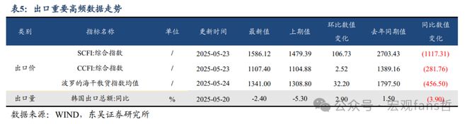 出口数量方面,韩国5月前20日出口总额同比增速录得-2.40%,较4月回升2.90个百分点,较去年回落3.90个百分点。国内方面,5月12日-5月18日监测港口累计完成货物吞吐量录得26397.0万吨,环比回升0.5%。