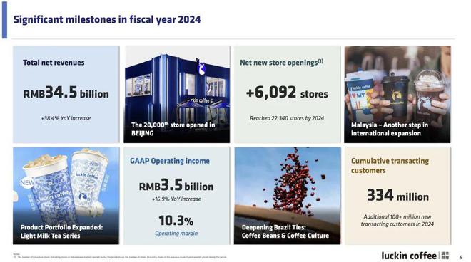 财报显示,2024年,瑞幸咖啡实现全年净收入344.75亿,同比增长38%;