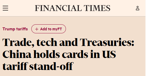 英国《金融时报》15日就分析指出,中国掌握有多张“王牌”,包括多样化的出口市场、对关键战略矿产的掌控以及国家体制上的巨大优势等,这些筹码不但能让中方经受住特朗普的关税考验,而且还能在谈判中彰显自身实力。