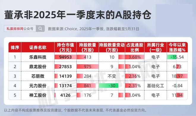 董承非今年曾表示,对2025年市场比较乐观。其中,半导体企业方向比较看好材料和设计。另外,他在公用事业持仓也比较多,今年还会买一些港股中的优质成长股。