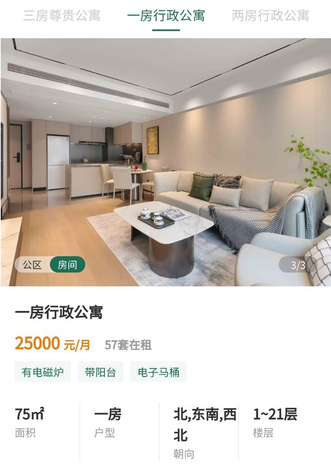 再如,同属招商蛇口旗下的公寓及酒店资产管理运营专家招商伊敦,其运营的高端服务公寓品牌“深圳泰格壹棠服务公寓”,约75㎡一居室月租金便可达到2.5万元。