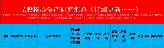 我做了下面这张《A股核心资产研究汇总》表,里面精选了上百家优质公司,并附数万字的分析方法。