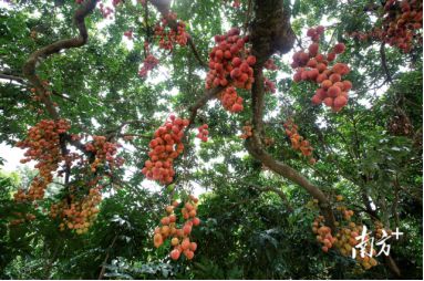 图说:茂名高州根子镇的贡园,102棵百年以上古荔枝树静静伫立,硕果累累。图源:南方+