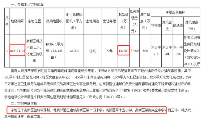 回溯此前土拍市场来看,5月19日,丝路软件城一宗72亩住宅用地以11006元/㎡楼面价成交,成为2025年高新区首宗“万元地块”。该地块邻近已建成的高新区第十四小学、高新区第十五小学、高新区第四完全中学。