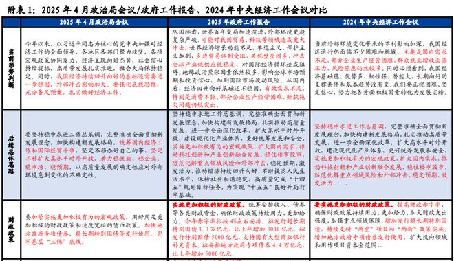 事件:2025年4月25日,政治局会议召开,分析研究当前经济形势和经济工作。