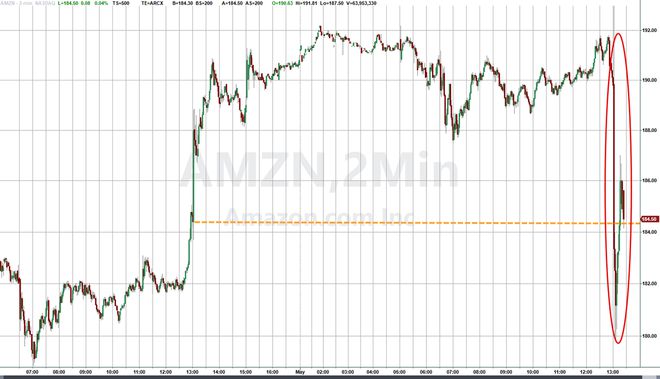 AWS销售放缓和疲软的利润指引让投资者第一时间采取抛售的行动。财报公布后,收涨超3%的亚马逊股价盘后迅速转跌,盘后一度跌5%,后很快收窄部分跌幅。