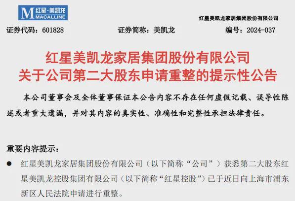 虽然一通“割肉”,也没堵上窟窿。2024年6月7日,红星美凯龙的二股东——红星控股申请破产重整被法院受理。