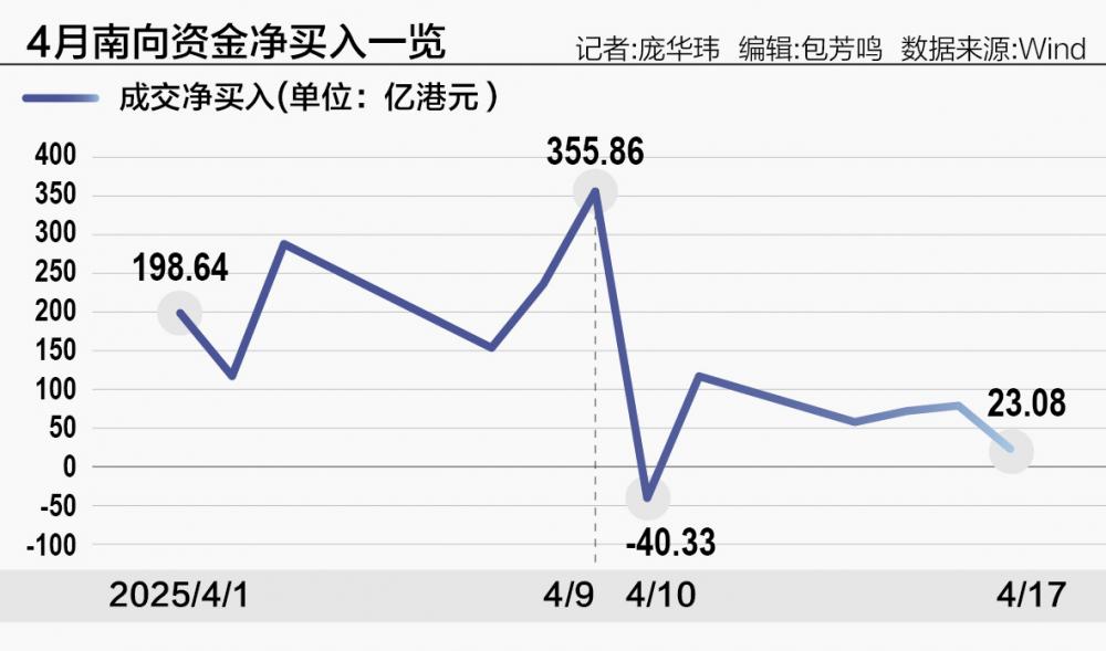 4月初以来,特朗普政府的关税政策波动加剧,对港股的扰动加大,南向资金净流入规模却突破新高。而在4月22日,美国对华降关税预期上升,港股市场连续两日上涨,南向资金净流出。