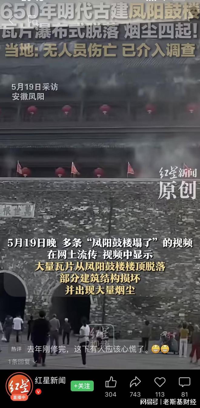 有一说一,凤阳市的工作效率还是很高的,就像鼓楼屋顶前年修今年就塌了。