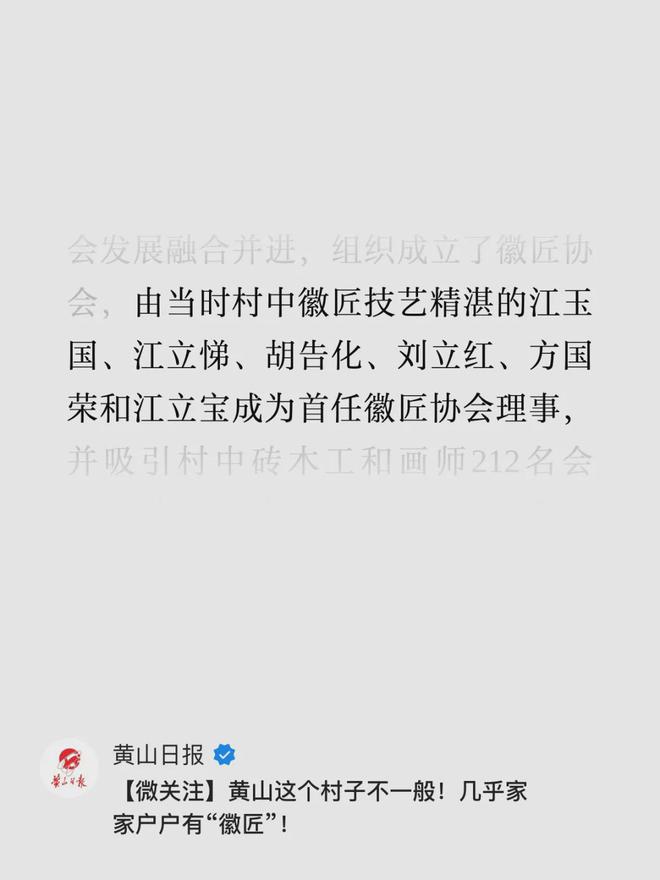 《黄山日报》报道协会的首任理事,由当时村子里技艺精湛的6位徽匠担任。